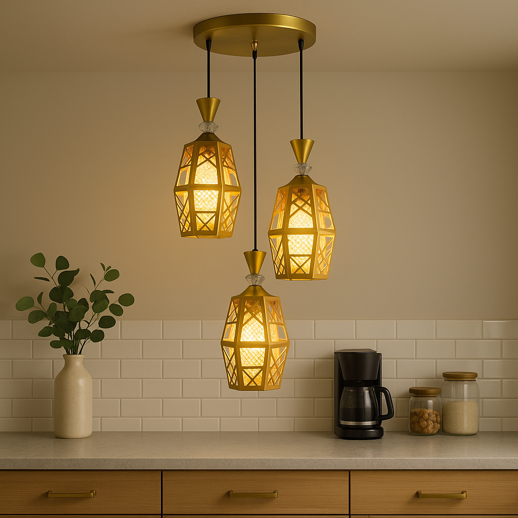 Homes Elite Modern Nordic Trio Pendant Light Minimalist Gold & Matte Shade Hanging Lamp for Dining Room or Kitchen Island