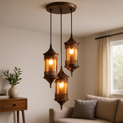 Homes Elite Vintage Moroccan Lantern Pendant Light 3-Light Cluster with Antique Brass Finish